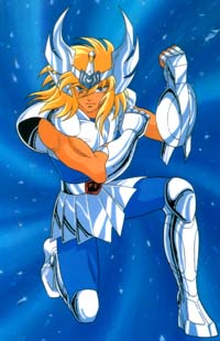 ¿Quien es Hyoga?Este Caballero simboliza el amor hacia su madre. Al inicio de la serie es uno de los Caballeros mas dificiles de vencer en las batallas, pero en el transcurso de la historia su evolucion lo hace vulnerable; ya que siempre tiene presente el recuerdo de su madre y de sus "El Caballero del hielo" y "Camus de Acuario". Para no fallarle al recuerdo, siempre lleva puesta una cruz que le regalo su madre y que salvara su vida en varias ocaciones. Debido a la evolucion de sus ataques se convierte en digno por tador de la Armadura Dorada de Acuario pertenecia a us maestro (Camus).